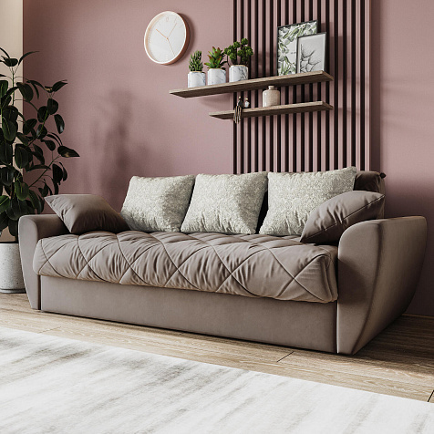 Прямой трехместный диван-кровать «Тэйлор» - это удобная и многофункциональная модель, которая великолепно вписывается в любой интерьер. Диван имеет сверхкомфортную глубокую посадку, спальное место для здорового отдыха и полноценного сна и встроенные вместительные ящики для белья. Глубину посадки легко регулировать с помощью больших приспинных и декоративных малых подушек для максимального удобного отдыха. Диван «Тэйлор» - это простота в использовании, надежность и безупречный комфорт.