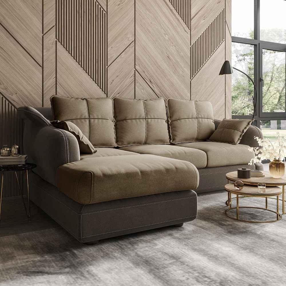Угловой левый двухместный диван «Неаполь» - это идеальное сочетание стиля и функциональности. Плавные округлые линии подчеркивают элегантный внешний вид модели. Декоративная отделка на спинке и подлокотниках выделяет неповторимость дизайна и плавность форм, контрастный кант на подушках создает четкость контура. Диван обладает комфортной посадкой за счет глубокого мягкого сиденья и высокой спинки, что способствует поддержке позвоночника в шейно-плечевой и поясничной областях. На таком вместительном диване удобно отдыхать всей семьёй или разместить большую компанию друзей.