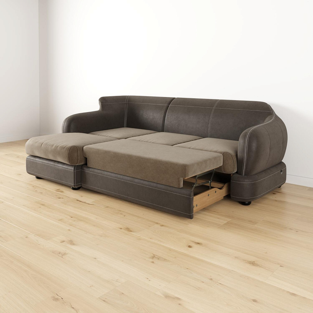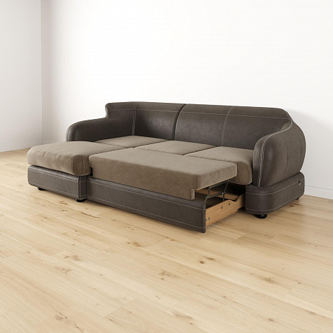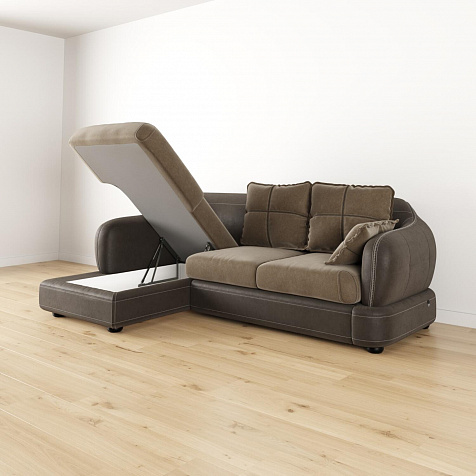 - Ящик для белья. В конструкции дивана предусмотрено вместительное отделение под подъемной угловой частью для хранения постельных принадлежностей.
