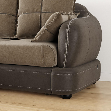 - Обивка из искусственной замши и микрофибры. В качестве обивки спинки, подлокотников и царги используется искусственная замша, которая устойчива к истиранию и выцветанию, не подвержена растягиванию, не лоснится, не образует катышков, долговечна и не требовательна в уходе. Подушки выполнены в обивке из мягкой микрофибры, которая устойчива к световому воздействию, отличается высокой воздухопроницаемостью и износостойкостью.