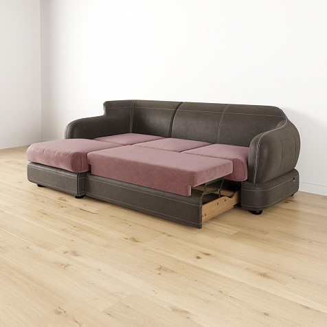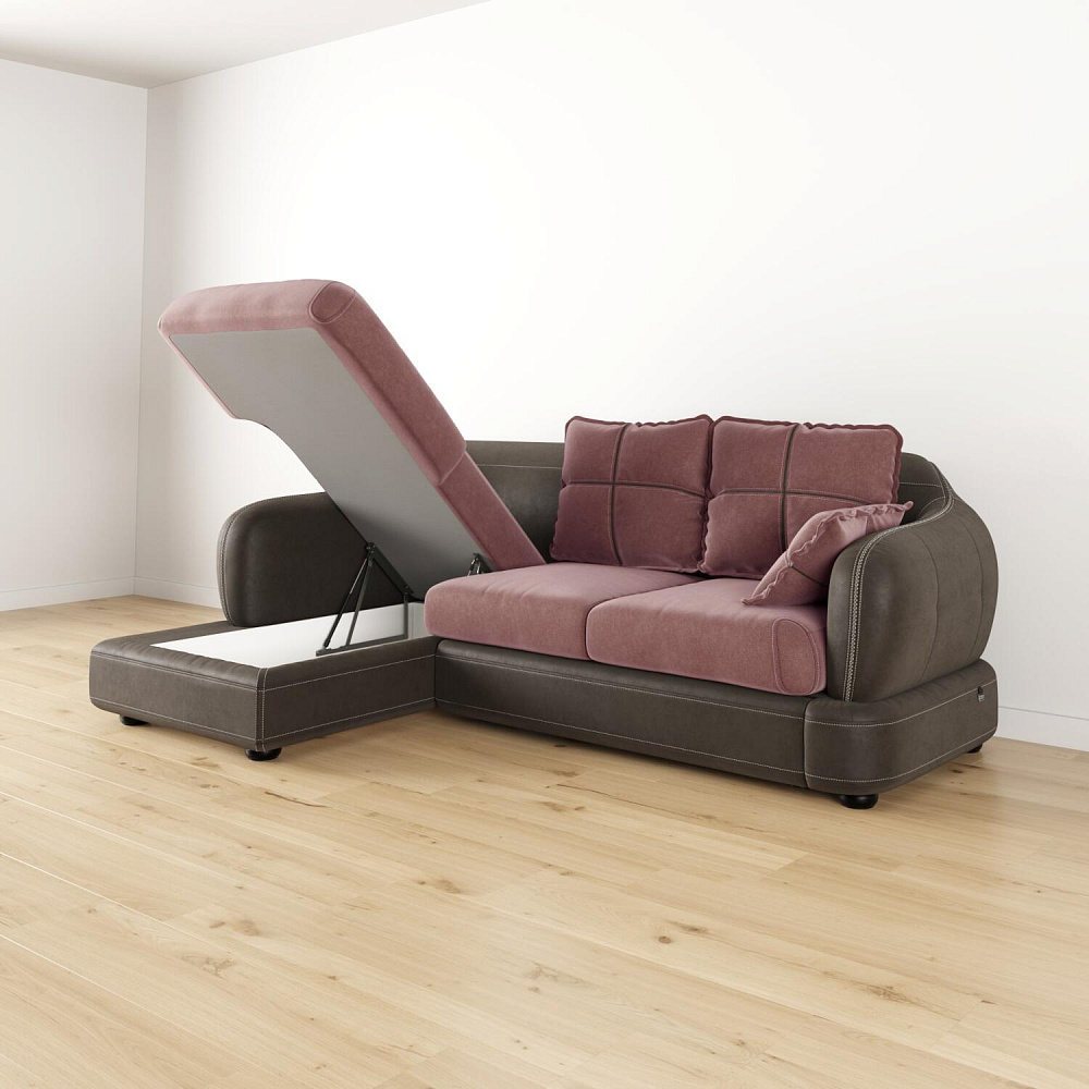 - Ящик для белья. В конструкции дивана предусмотрено вместительное отделение под подъемной угловой частью для хранения постельных принадлежностей.