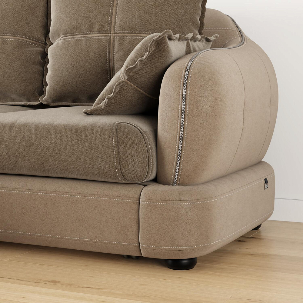 - Обивка из искусственной замши и микрофибры. В качестве обивки спинки, подлокотников и царги используется искусственная замша, которая устойчива к истиранию и выцветанию, не подвержена растягиванию, не лоснится, не образует катышков, долговечна и не требовательна в уходе. Подушки выполнены в обивке из мягкой микрофибры, которая устойчива к световому воздействию, отличается высокой воздухопроницаемостью и износостойкостью.