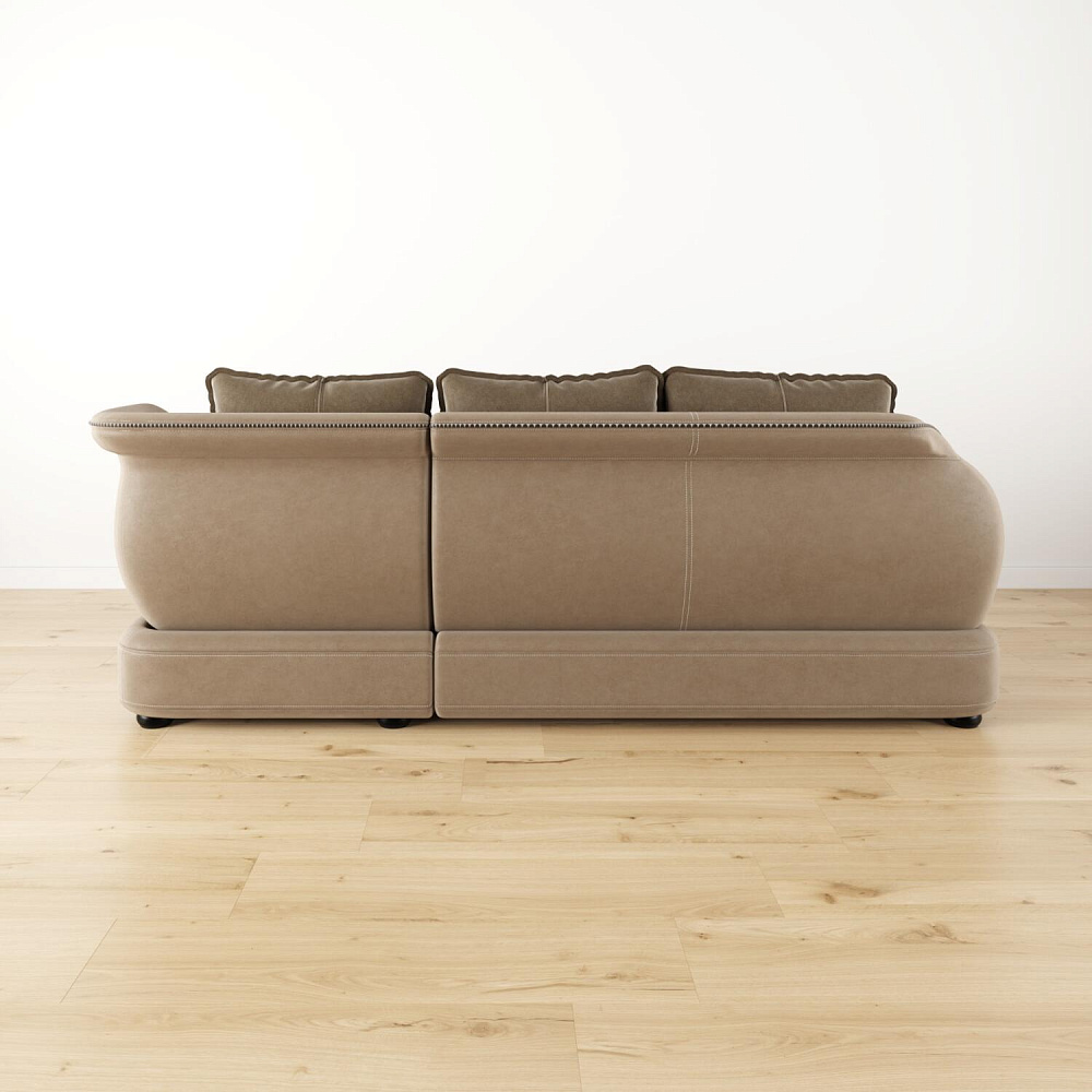 - Дизайн «360 градусов». Задняя часть спинки выполнена в той же обивке, что и основная, позволяя расположить диван в центре комнаты, не испортив внешний вид интерьера.