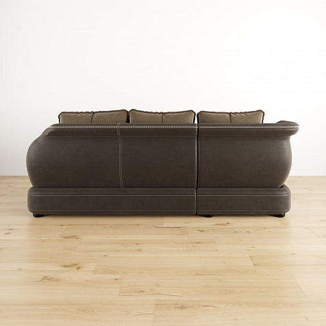 - Дизайн «360 градусов». Задняя часть спинки выполнена в той же обивке, что и основная, позволяя расположить диван в центре комнаты, не испортив внешний вид интерьера.