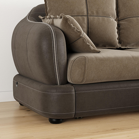 - Обивка из искусственной замши и микрофибры. В качестве обивки спинки, подлокотников и царги используется искусственная замша, которая устойчива к истиранию и выцветанию, не подвержена растягиванию, не лоснится, не образует катышков, долговечна и не требовательна в уходе. Подушки выполнены в обивке из мягкой микрофибры, которая устойчива к световому воздействию, отличается высокой воздухопроницаемостью и износостойкостью.