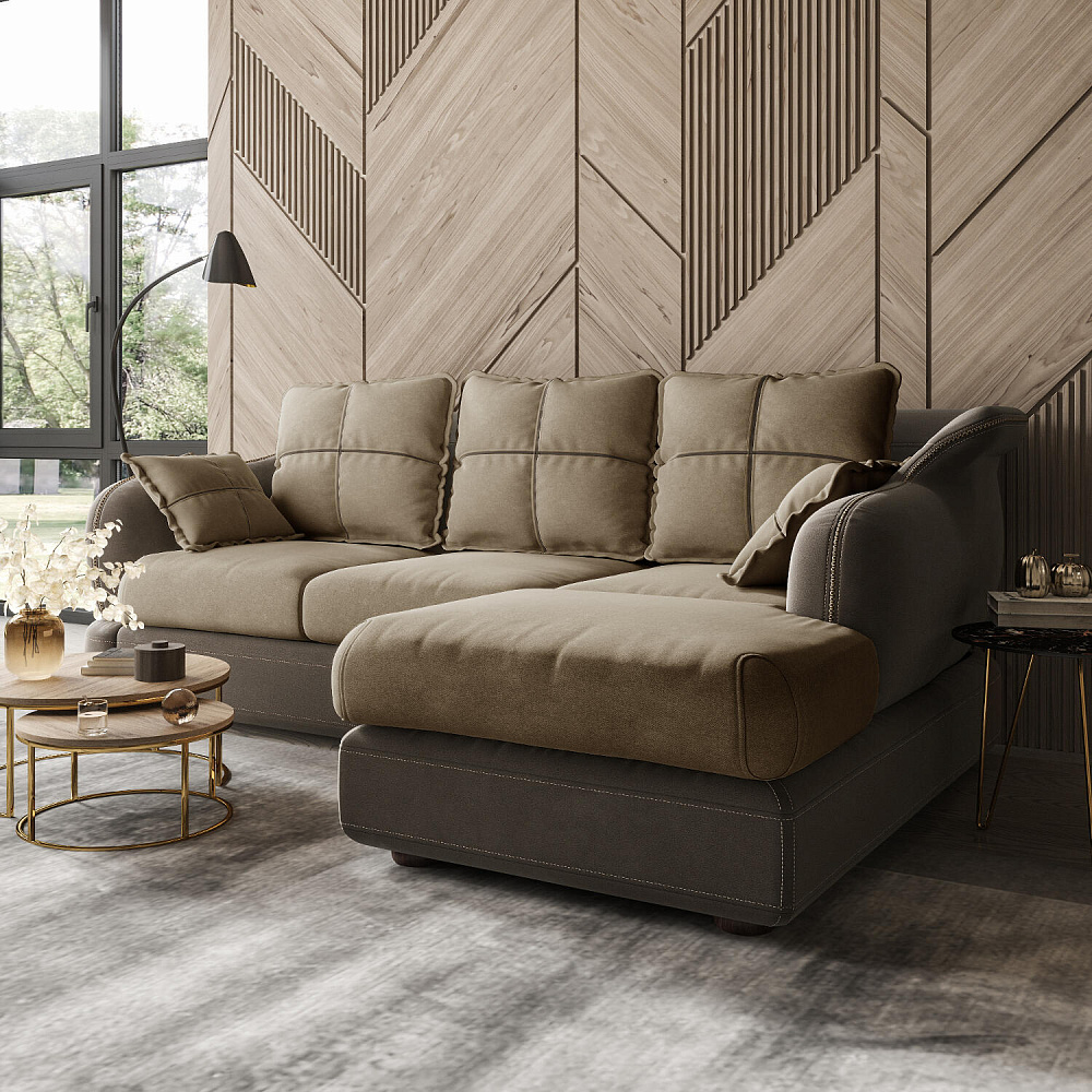Угловой правый двухместный диван «Неаполь» - это идеальное сочетание стиля и функциональности. Плавные округлые линии подчеркивают элегантный внешний вид модели. Декоративная отделка на спинке и подлокотниках выделяет неповторимость дизайна и плавность форм, контрастный кант на подушках создает четкость контура. Диван обладает комфортной посадкой за счет глубокого мягкого сиденья и высокой спинки, что способствует поддержке позвоночника в шейно-плечевой и поясничной областях. На таком вместительном диване удобно отдыхать всей семьёй или разместить большую компанию друзей.