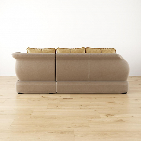 - Дизайн «360 градусов». Задняя часть спинки выполнена в той же обивке, что и основная, позволяя расположить диван в центре комнаты, не испортив внешний вид интерьера.