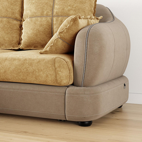 Угловой левый двухместный диван «Неаполь» - это идеальное сочетание стиля и функциональности. Плавные округлые линии подчеркивают элегантный внешний вид модели. Декоративная отделка на спинке и подлокотниках выделяет неповторимость дизайна и плавность форм, контрастный кант на подушках создает четкость контура. Диван обладает комфортной посадкой за счет глубокого мягкого сиденья и высокой спинки, что способствует поддержке позвоночника в шейно-плечевой и поясничной областях. На таком вместительном диване удобно отдыхать всей семьёй или разместить большую компанию друзей.