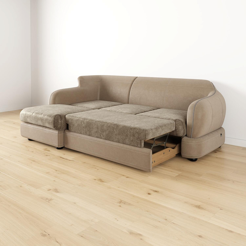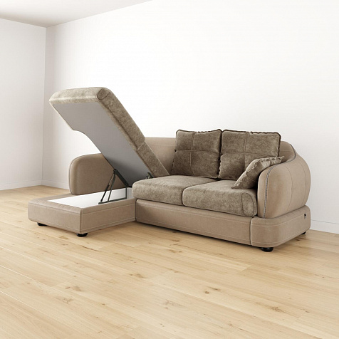 - Ящик для белья. В конструкции дивана предусмотрено вместительное отделение под подъемной угловой частью для хранения постельных принадлежностей.
