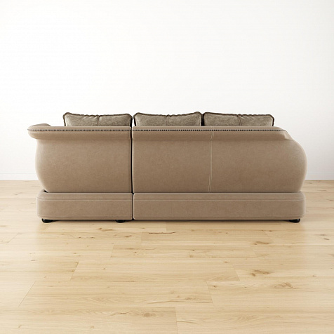 - Дизайн «360 градусов». Задняя часть спинки выполнена в той же обивке, что и основная, позволяя расположить диван в центре комнаты, не испортив внешний вид интерьера.