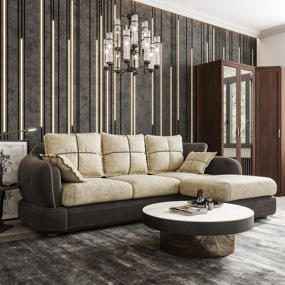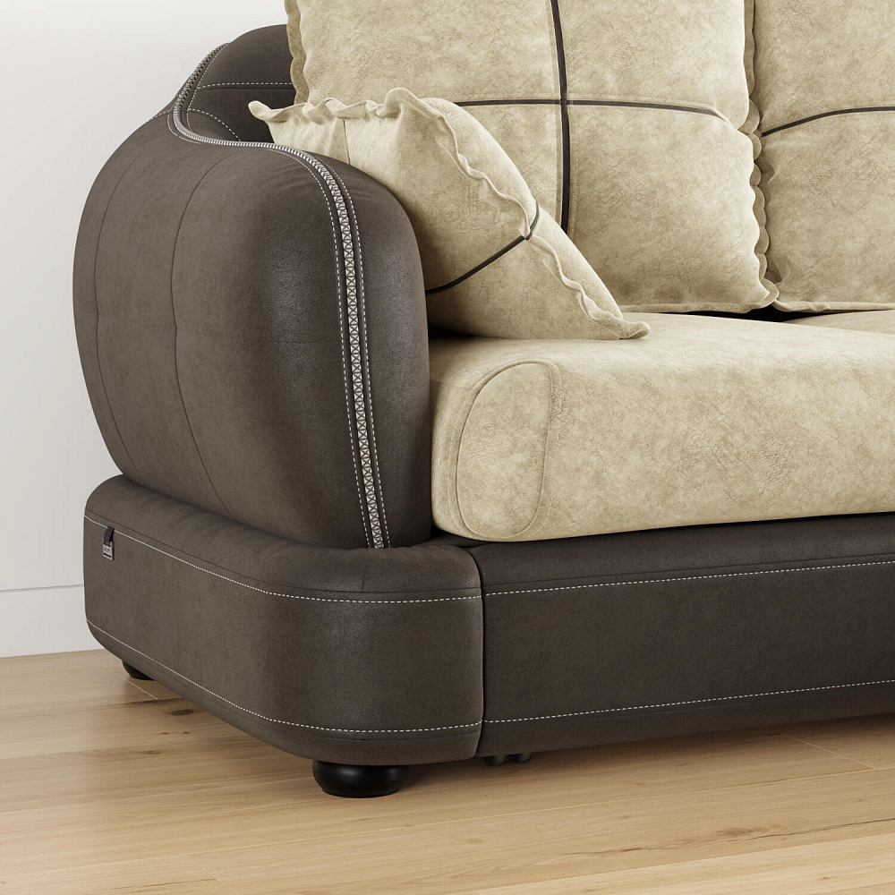 Угловой правый двухместный диван «Неаполь» - это идеальное сочетание стиля и функциональности. Плавные округлые линии подчеркивают элегантный внешний вид модели. Декоративная отделка на спинке и подлокотниках выделяет неповторимость дизайна и плавность форм, контрастный кант на подушках создает четкость контура. Диван обладает комфортной посадкой за счет глубокого мягкого сиденья и высокой спинки, что способствует поддержке позвоночника в шейно-плечевой и поясничной областях. На таком вместительном диване удобно отдыхать всей семьёй или разместить большую компанию друзей.