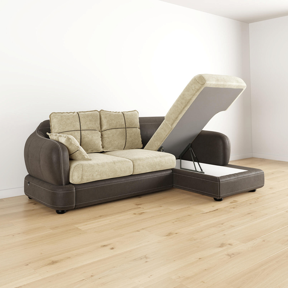 - Ящик для белья. В конструкции дивана предусмотрено вместительное отделение под подъемной угловой частью для хранения постельных принадлежностей.