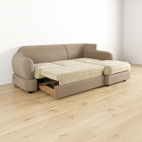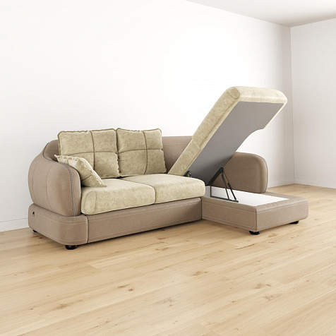 - Ящик для белья. В конструкции дивана предусмотрено вместительное отделение под подъемной угловой частью для хранения постельных принадлежностей.