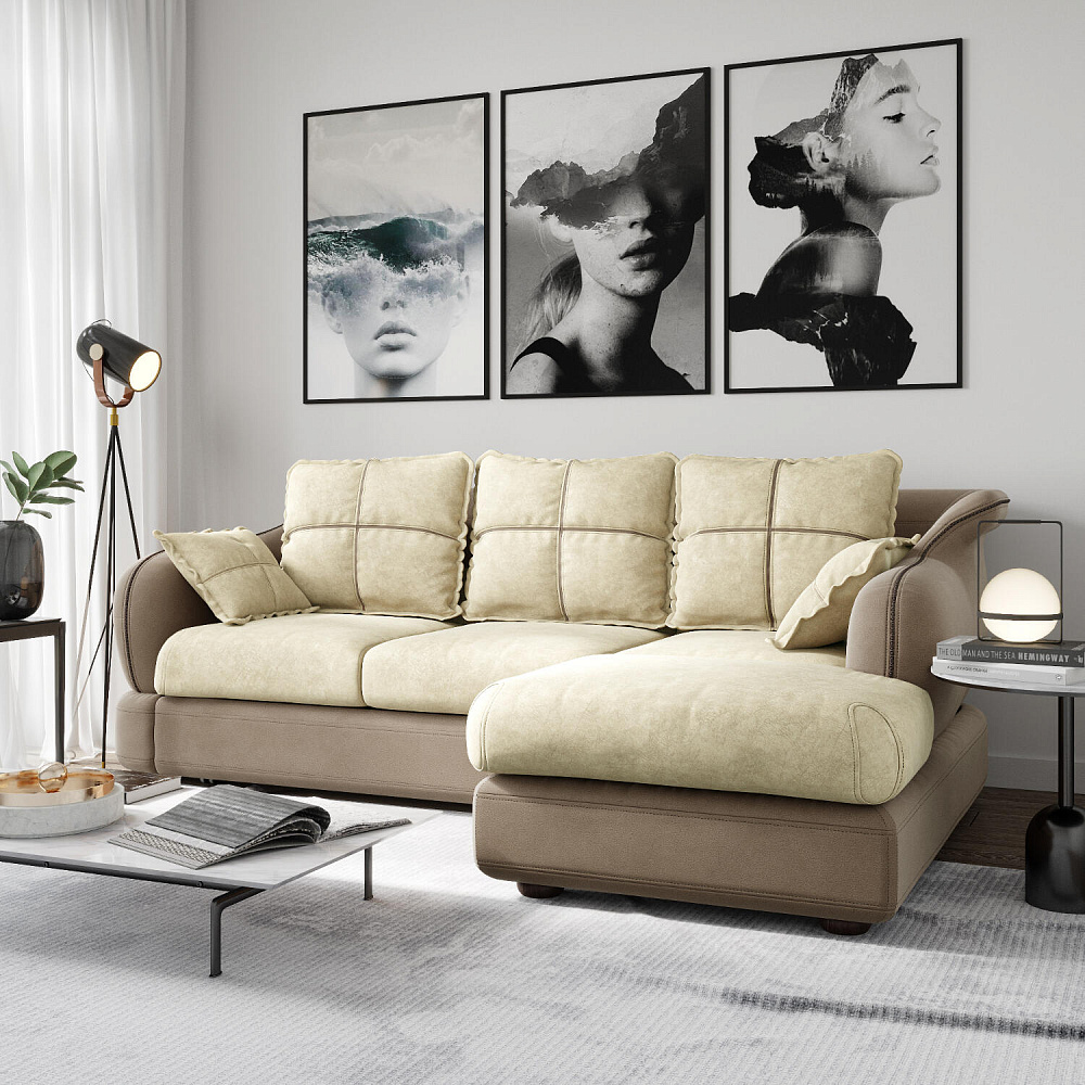 Угловой правый двухместный диван «Неаполь» - это идеальное сочетание стиля и функциональности. Плавные округлые линии подчеркивают элегантный внешний вид модели. Декоративная отделка на спинке и подлокотниках выделяет неповторимость дизайна и плавность форм, контрастный кант на подушках создает четкость контура. Диван обладает комфортной посадкой за счет глубокого мягкого сиденья и высокой спинки, что способствует поддержке позвоночника в шейно-плечевой и поясничной областях. На таком вместительном диване удобно отдыхать всей семьёй или разместить большую компанию друзей.