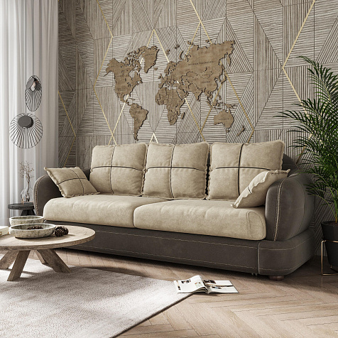 - Дизайн «360 градусов». Задняя часть спинки выполнена в той же обивке, что и основная, позволяя расположить диван в центре комнаты, не испортив внешний вид интерьера.