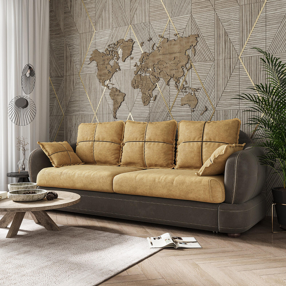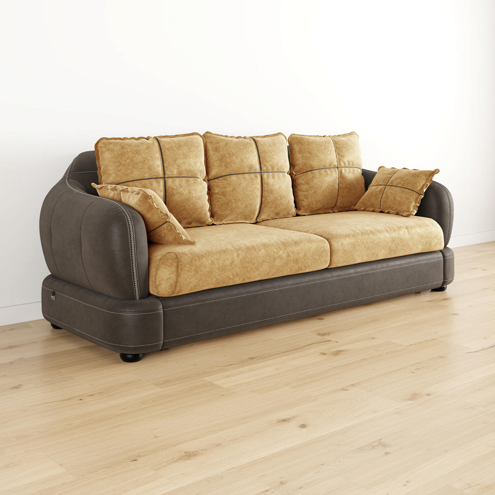 Прямой трехместный диван «Неаполь» - это идеальное сочетание стиля и функциональности. Плавные округлые линии подчеркивают элегантный внешний вид модели. Декоративная отделка на спинке и подлокотниках выделяет неповторимость дизайна и плавность форм, контрастный кант на подушках создает четкость контура. Диван обладает комфортной посадкой за счет глубокого мягкого сиденья и высокой спинки, что способствует поддержке позвоночника в шейно-плечевой и поясничной областях.