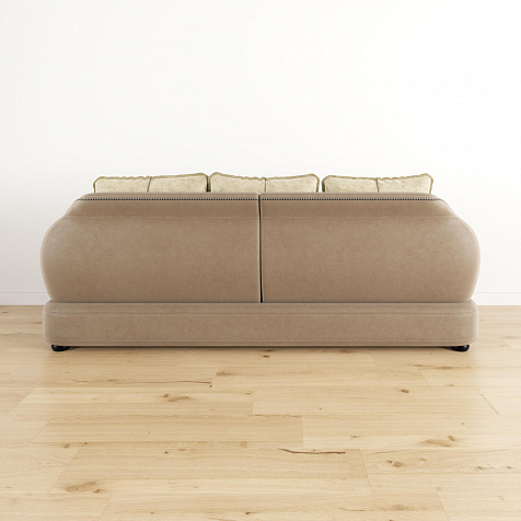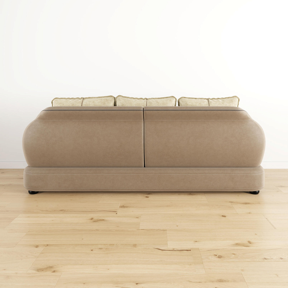 - Дизайн «360 градусов». Задняя часть спинки выполнена в той же обивке, что и основная, позволяя расположить диван в центре комнаты, не испортив внешний вид интерьера.