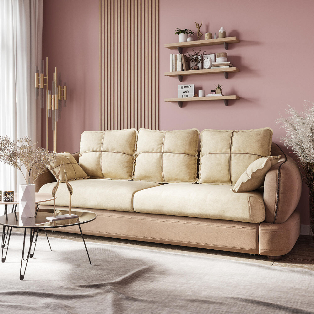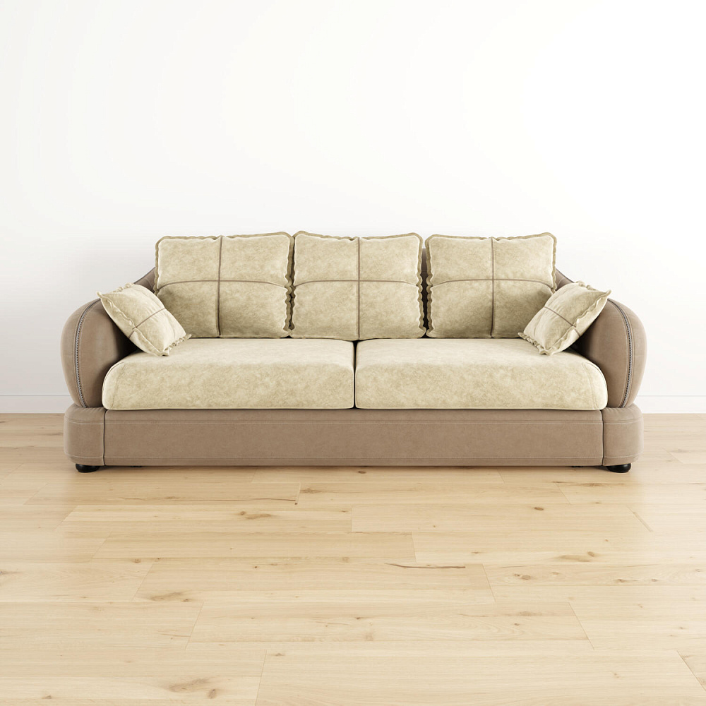 Прямой трехместный диван «Неаполь» - это идеальное сочетание стиля и функциональности. Плавные округлые линии подчеркивают элегантный внешний вид модели. Декоративная отделка на спинке и подлокотниках выделяет неповторимость дизайна и плавность форм, контрастный кант на подушках создает четкость контура. Диван обладает комфортной посадкой за счет глубокого мягкого сиденья и высокой спинки, что способствует поддержке позвоночника в шейно-плечевой и поясничной областях.