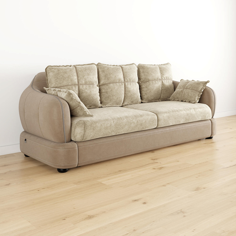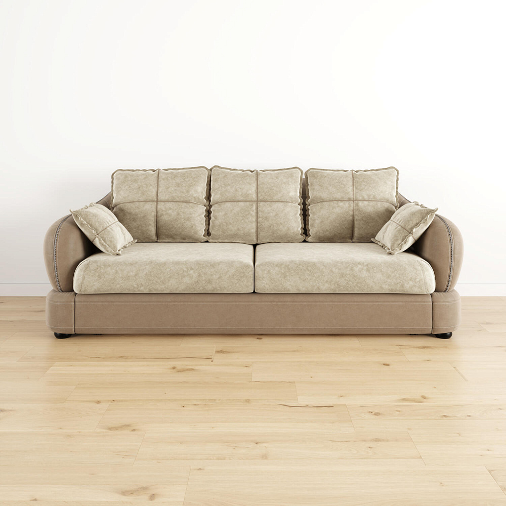 Прямой трехместный диван «Неаполь» - это идеальное сочетание стиля и функциональности. Плавные округлые линии подчеркивают элегантный внешний вид модели. Декоративная отделка на спинке и подлокотниках выделяет неповторимость дизайна и плавность форм, контрастный кант на подушках создает четкость контура. Диван обладает комфортной посадкой за счет глубокого мягкого сиденья и высокой спинки, что способствует поддержке позвоночника в шейно-плечевой и поясничной областях.