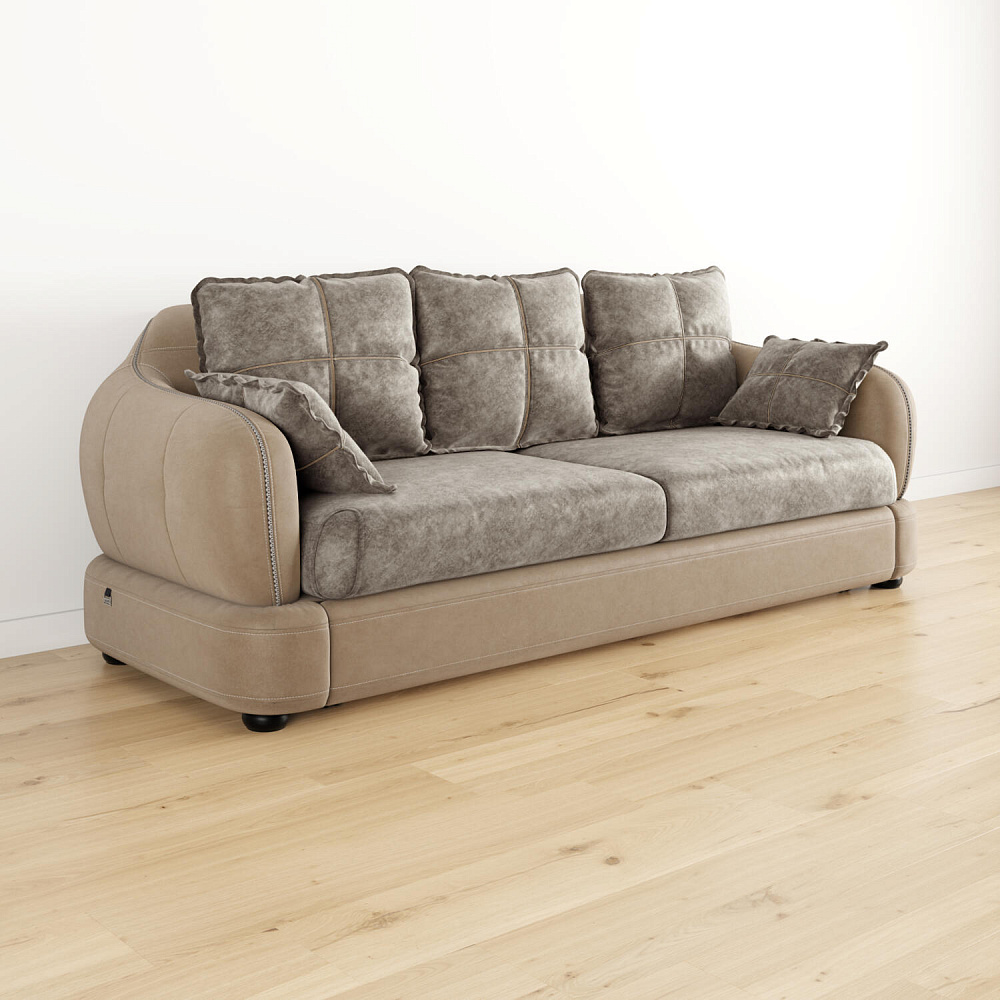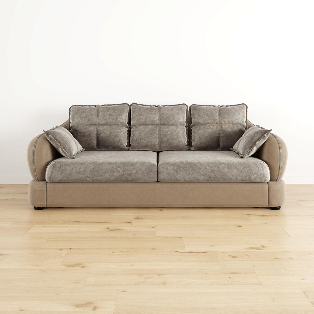 Прямой трехместный диван «Неаполь» - это идеальное сочетание стиля и функциональности. Плавные округлые линии подчеркивают элегантный внешний вид модели. Декоративная отделка на спинке и подлокотниках выделяет неповторимость дизайна и плавность форм, контрастный кант на подушках создает четкость контура. Диван обладает комфортной посадкой за счет глубокого мягкого сиденья и высокой спинки, что способствует поддержке позвоночника в шейно-плечевой и поясничной областях.
