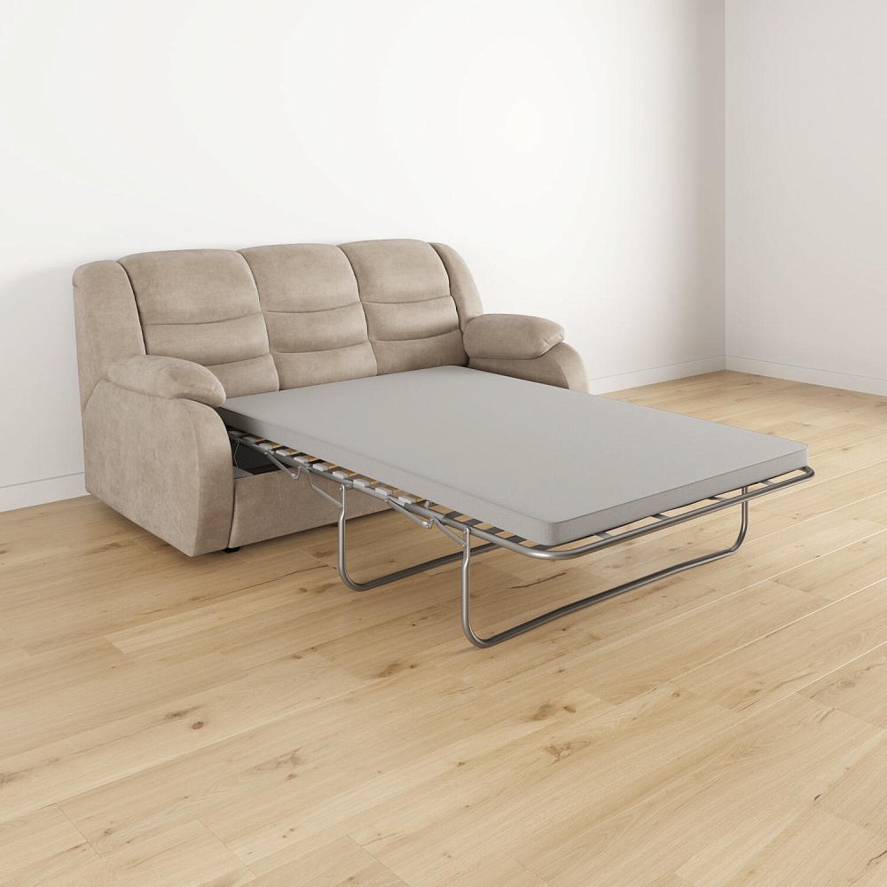 Прямой трёхместный диван-кровать «Ридберг» займет центральное место в гостиной и подойдет для ежедневного сна. Прекрасная эргономика модели обеспечивает поддержку всей спины за счет ячеистой конструкции подушки спинки и комфортной высоты. Сама спинка состоит из трех частей, при этом плотность набивки каждого отсека разная. Благодаря этому позвоночник всегда будет находиться в комфортном положении.