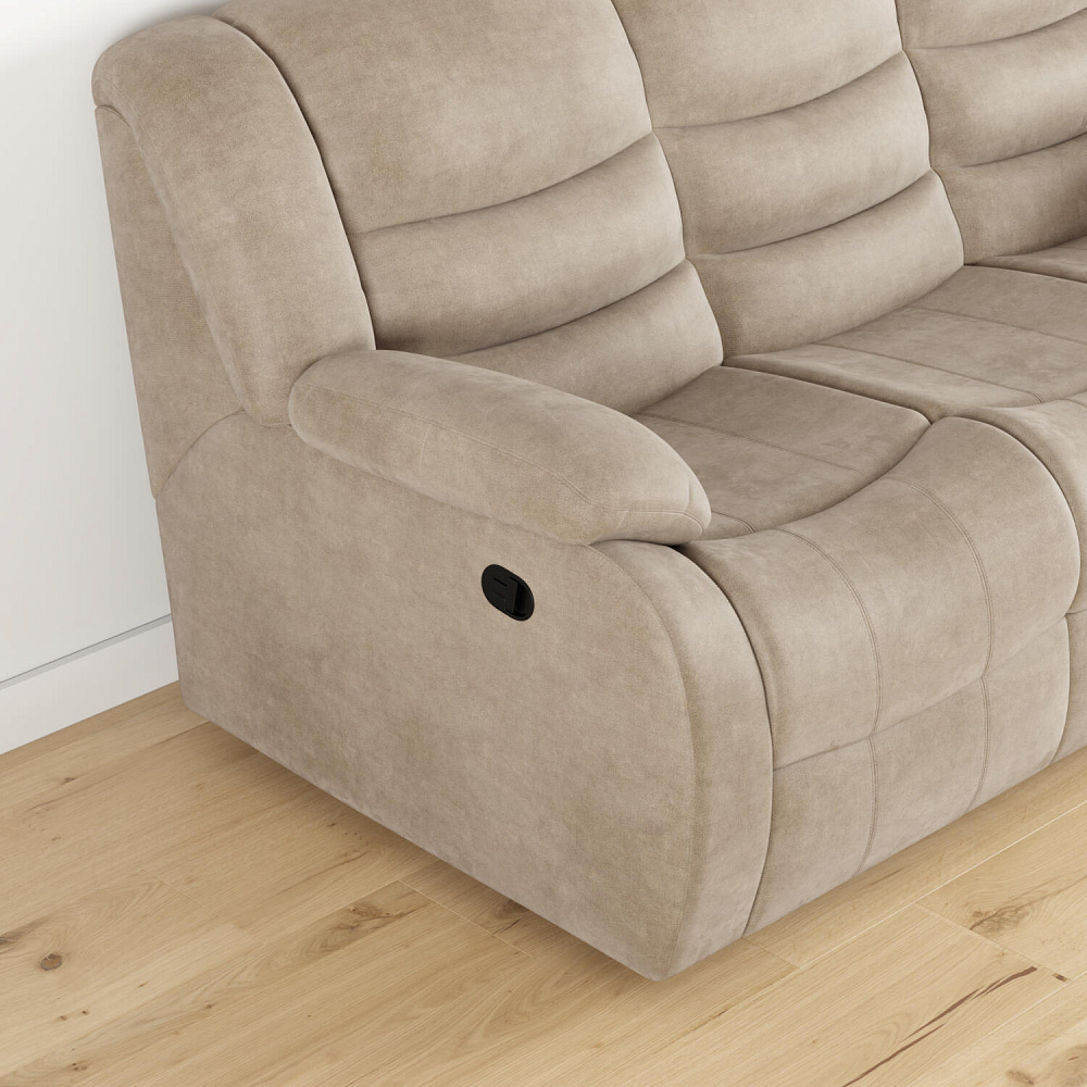Прямой трёхместный диван «Ридберг» с двумя механизмами «Реклайнер» от американской компании LEGGET&PLATT. Боковые части дивана превращаются в удобные кресла, позволяя максимально расслабиться и отдохнуть. Диван можно настроить под себя и насладиться просмотром фильма или чтением книги. Уникальная модель станет любимым местом в гостиной.
