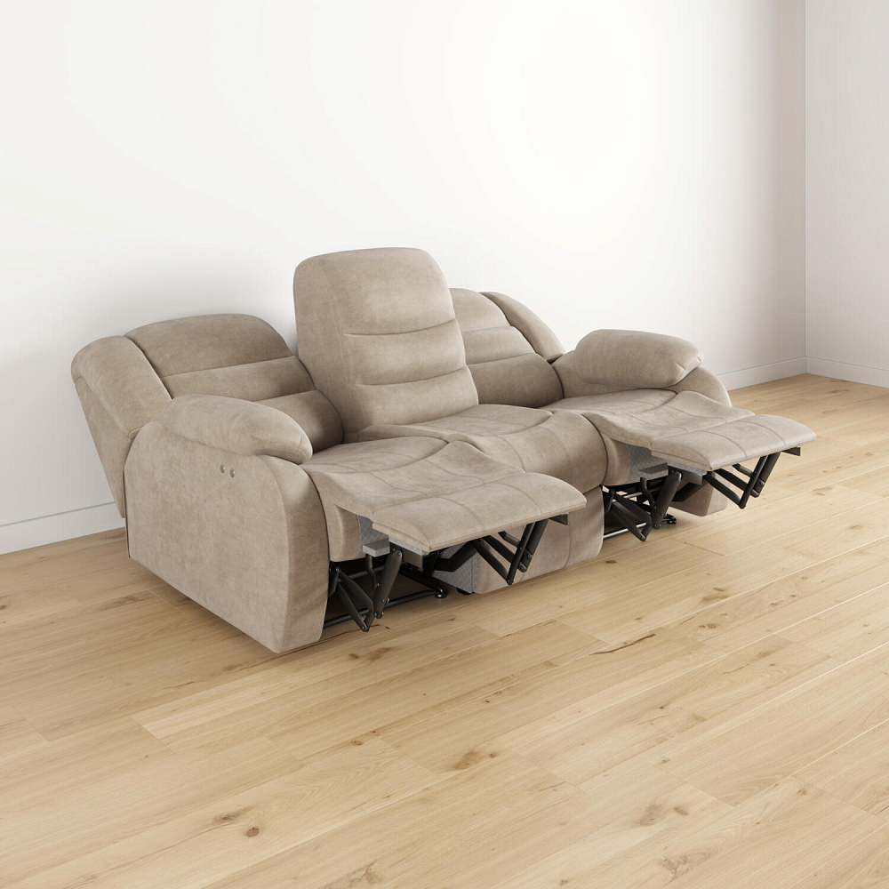 Прямой трёхместный диван «Ридберг» с двумя механизмами «Электро-реклайнер» от американской компании LEGGET&PLATT. Боковые части дивана превращаются в удобные кресла, позволяя максимально расслабиться и отдохнуть. Внутри каждого кресла скрыт электропривод, обеспечивающий максимальный комфорт в использовании и фиксацию в любом положении. Диван можно настроить под себя и насладиться просмотром фильма или чтением книги. Уникальная модель станет любимым местом в гостиной.