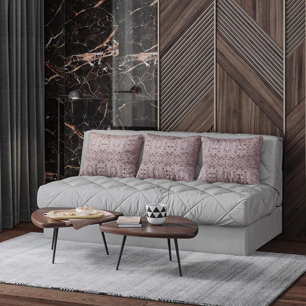 - Обивка из микровелюра. Мягкая и приятная на ощупь ткань обладает высокой прочностью и устойчивостью к истиранию.
