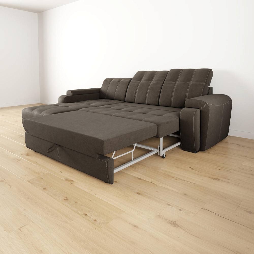 - Механизм трансформации «Телескоп». Металлический каркас на основе механизма «Дельфин» имеет бесшумное выкатывание благодаря применению обрезиненных роликов. Простая трансформация без скрипа позволяет превратить диван в полноценное спальное место, которое по комфорту приближено к матрасу и гарантирует максимальное расслабление и крепкий сон.