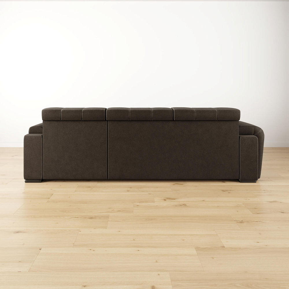 - Дизайн «360 градусов». Спинка выполнена в той же обивке, что и весь диван — модель будет изумительно смотреться как у стены, так и в центре комнаты.