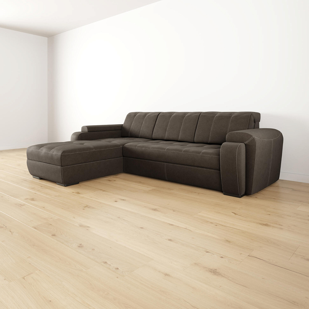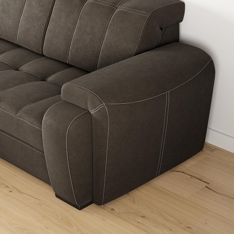 Угловой диван «Бруно» — это лаконичность и строгость, универсальные размеры и высокая функциональность. Данная модель идеально подходит для людей высокого роста. Благодаря регулируемым подъемным подголовникам ваша спина будет всегда в правильном положении. Диван имеет удобную посадку за счет увеличенной глубины сиденья — 62 см. Мягкие элементы в верхней части сиденья в сочетании с высокопрочным пенополиуретаном в основании сиденья позволяют более равномерно распределить нагрузку, придавая дополнительный комфорт и увеличивая срок службы мебели.