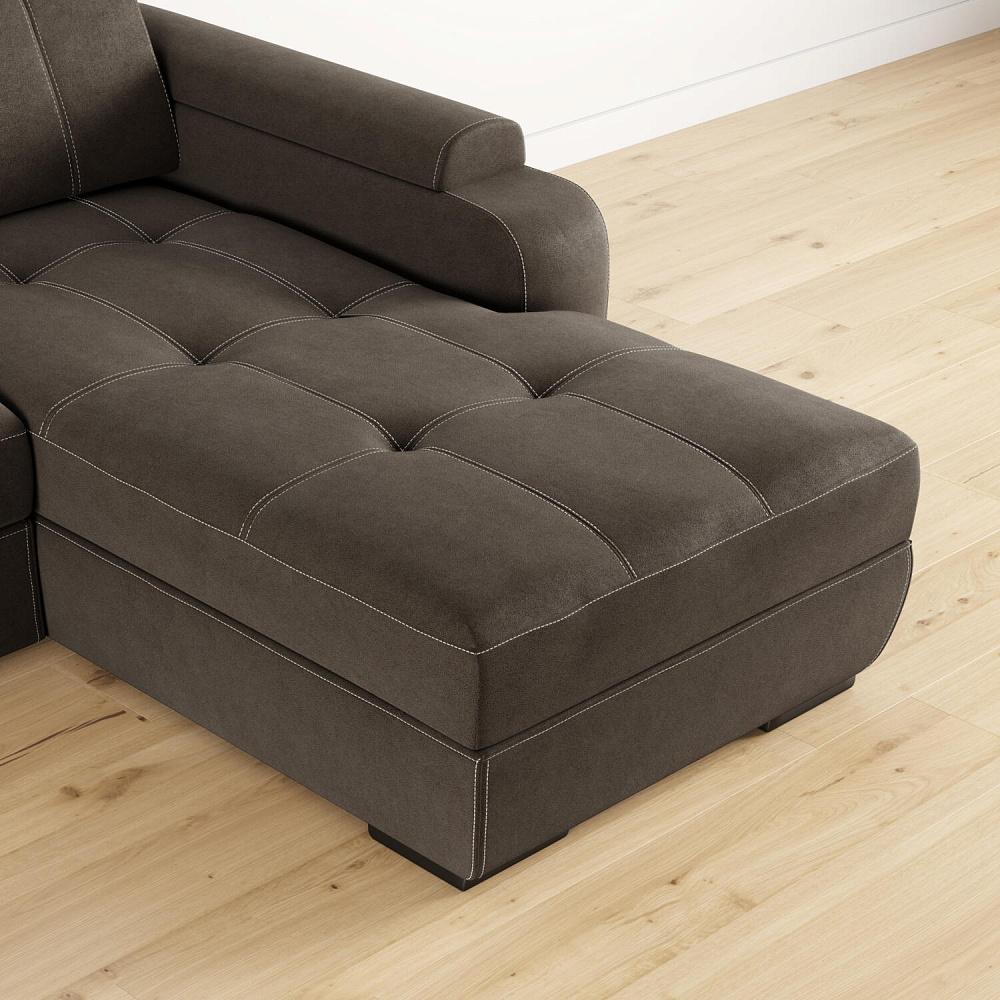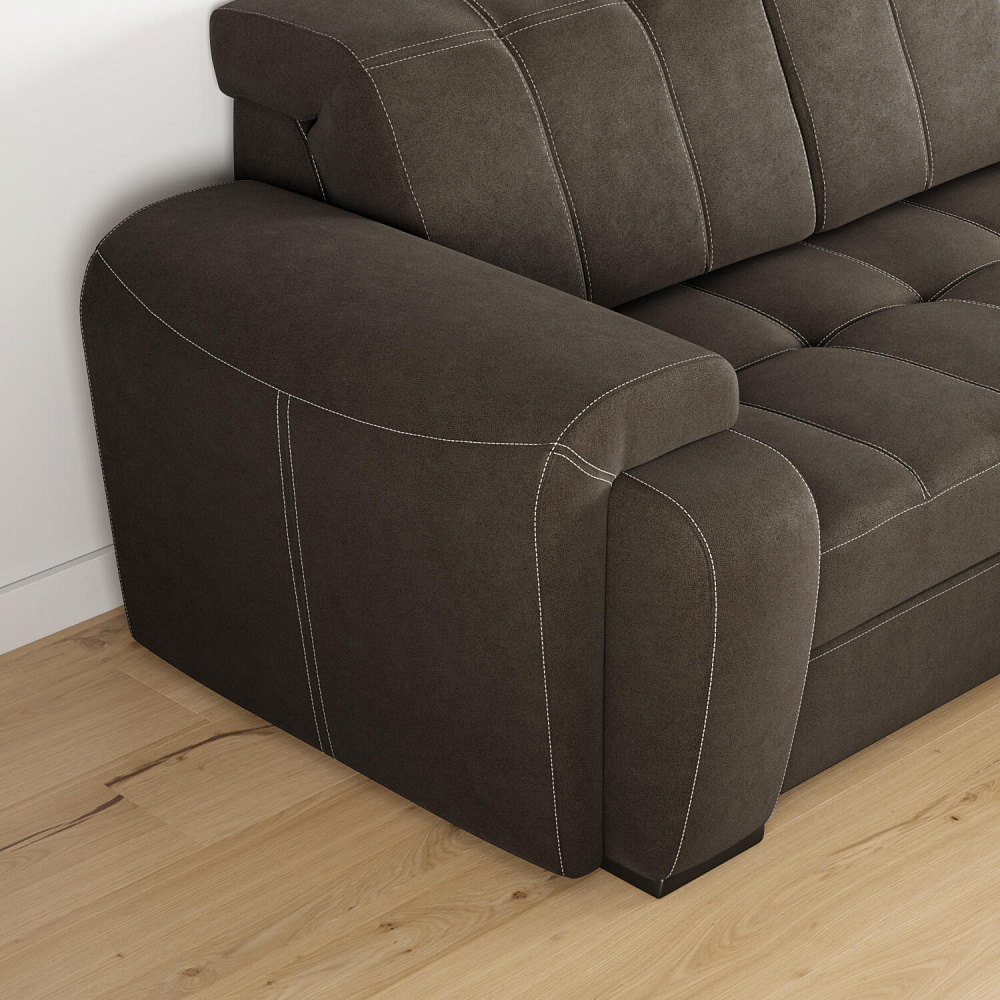 Угловой диван «Бруно» — это лаконичность и строгость, универсальные размеры и высокая функциональность. Данная модель идеально подходит для людей высокого роста. Благодаря регулируемым подъемным подголовникам ваша спина будет всегда в правильном положении. Диван имеет удобную посадку за счет увеличенной глубины сиденья — 62 см. Мягкие элементы в верхней части сиденья в сочетании с высокопрочным пенополиуретаном в основании сиденья позволяют более равномерно распределить нагрузку, придавая дополнительный комфорт и увеличивая срок службы мебели.