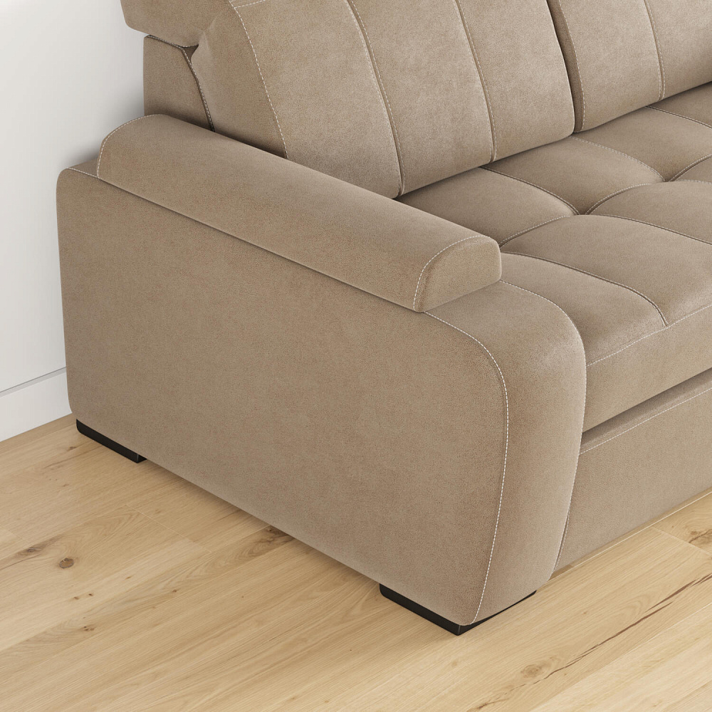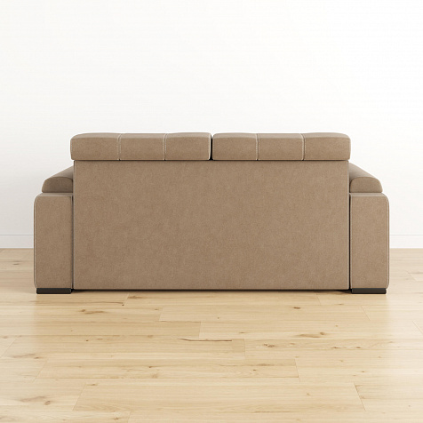 - Дизайн «360 градусов». Задняя часть спинки выполнена в той же обивке, что и весь диван — модель будет изумительно смотреться как у стены, так и в центре комнаты.