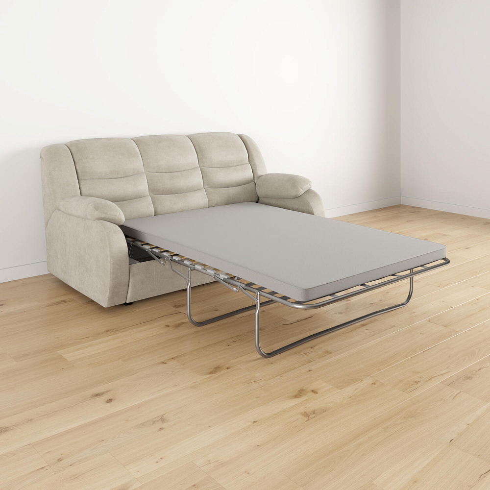 Прямой трёхместный диван-кровать «Ридберг» идеально подойдет для гостиной в качестве дополнительного спального места. Прекрасная эргономика модели обеспечивает поддержку всей спины за счет ячеистой конструкции подушки спинки и комфортной высоты. Сама спинка состоит из трех частей, при этом плотность набивки каждого отсека разная. Благодаря этому позвоночник всегда будет находиться в комфортном положении.