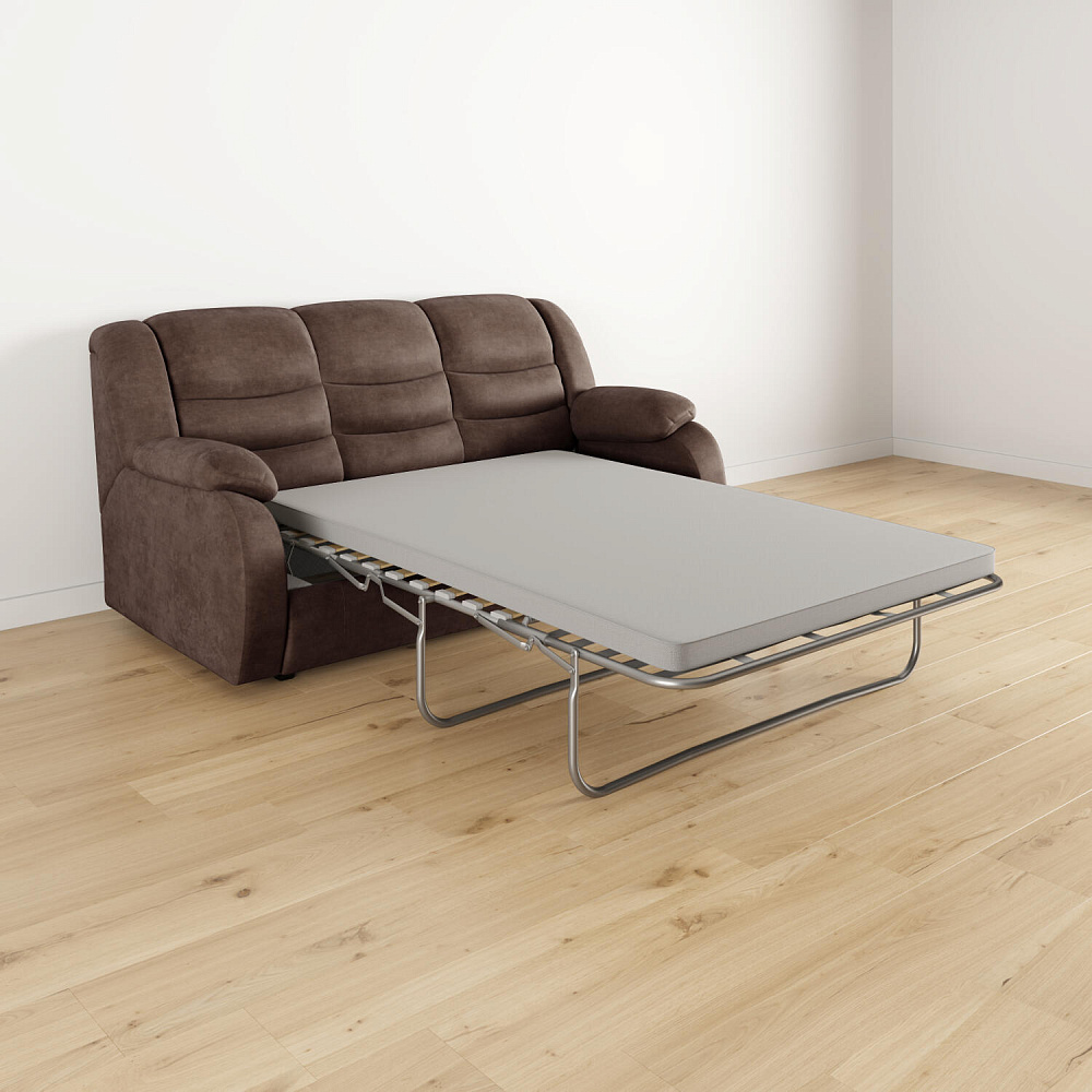 Прямой трёхместный диван-кровать «Ридберг» идеально подойдет для гостиной в качестве дополнительного спального места. Прекрасная эргономика модели обеспечивает поддержку всей спины за счет ячеистой конструкции подушки спинки и комфортной высоты. Сама спинка состоит из трех частей, при этом плотность набивки каждого отсека разная. Благодаря этому позвоночник всегда будет находиться в комфортном положении.