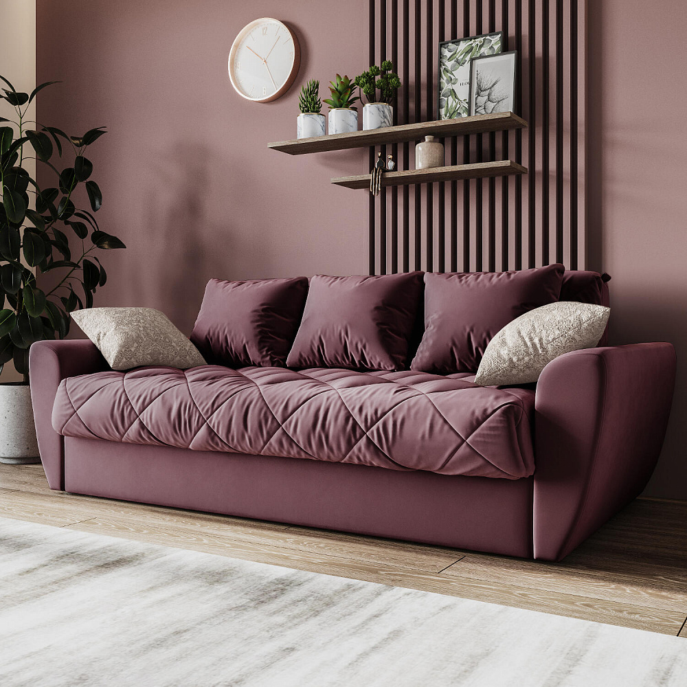 Прямой трехместный диван-кровать «Тэйлор» - это удобная и многофункциональная модель, которая великолепно вписывается в любой интерьер. Диван имеет сверхкомфортную глубокую посадку, спальное место для здорового отдыха и полноценного сна и встроенные вместительные ящики для белья. Глубину посадки легко регулировать с помощью больших приспинных и декоративных малых подушек для максимального удобного отдыха. Диван «Тэйлор» - это простота в использовании, надежность и безупречный комфорт.