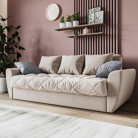 Прямой трехместный диван-кровать «Тэйлор» - это удобная и многофункциональная модель, которая великолепно вписывается в любой интерьер. Диван имеет сверхкомфортную глубокую посадку, спальное место для здорового отдыха и полноценного сна и встроенные вместительные ящики для белья. Глубину посадки легко регулировать с помощью больших приспинных и декоративных малых подушек для максимального удобного отдыха. Диван «Тэйлор» - это простота в использовании, надежность и безупречный комфорт.