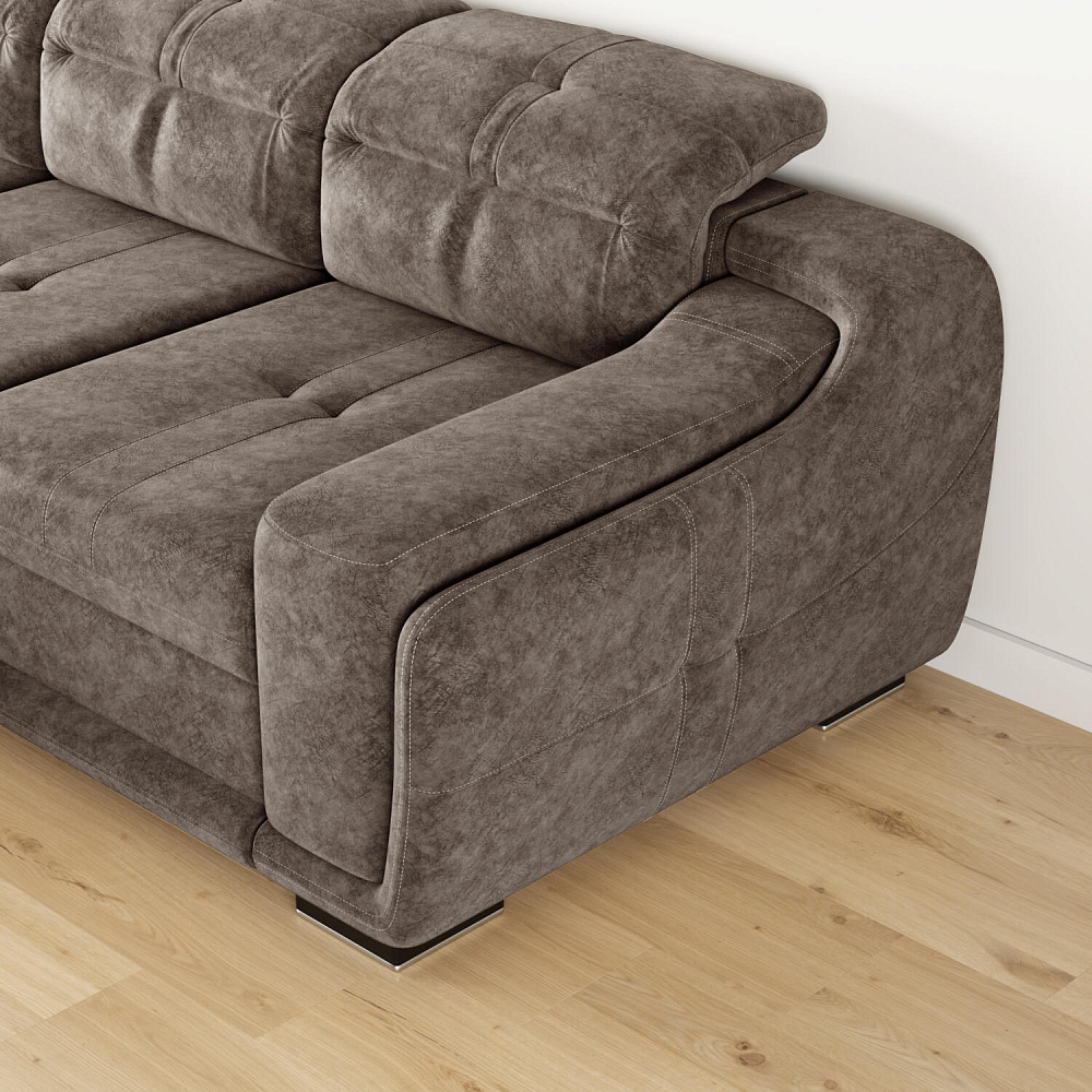 Подголовник с углублением в центре и фиксацией в 9 положениях. Для ещё большего комфорта в середине каждого из трёх подголовников дивана прострочен определённый узор, создающий углубление в центре.
