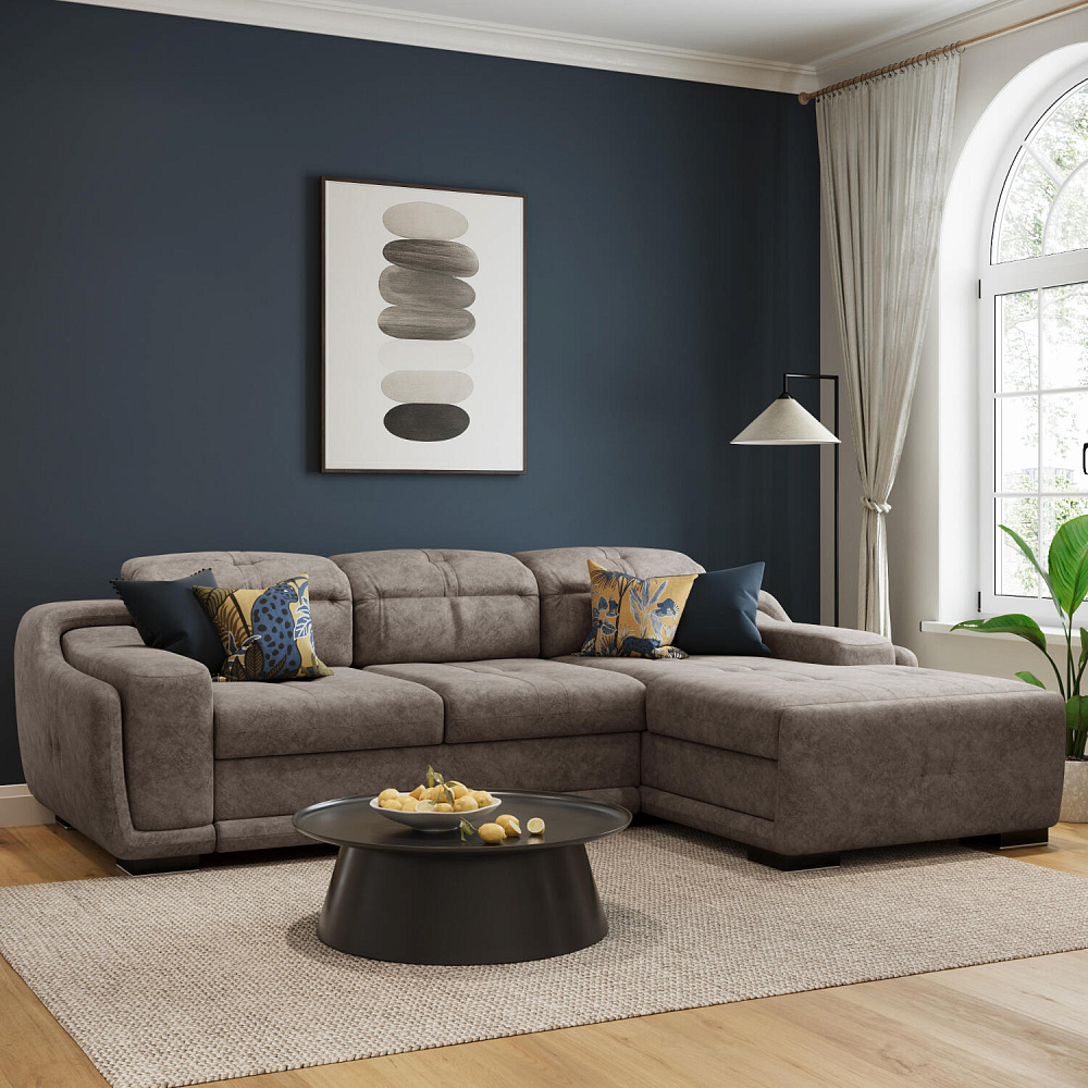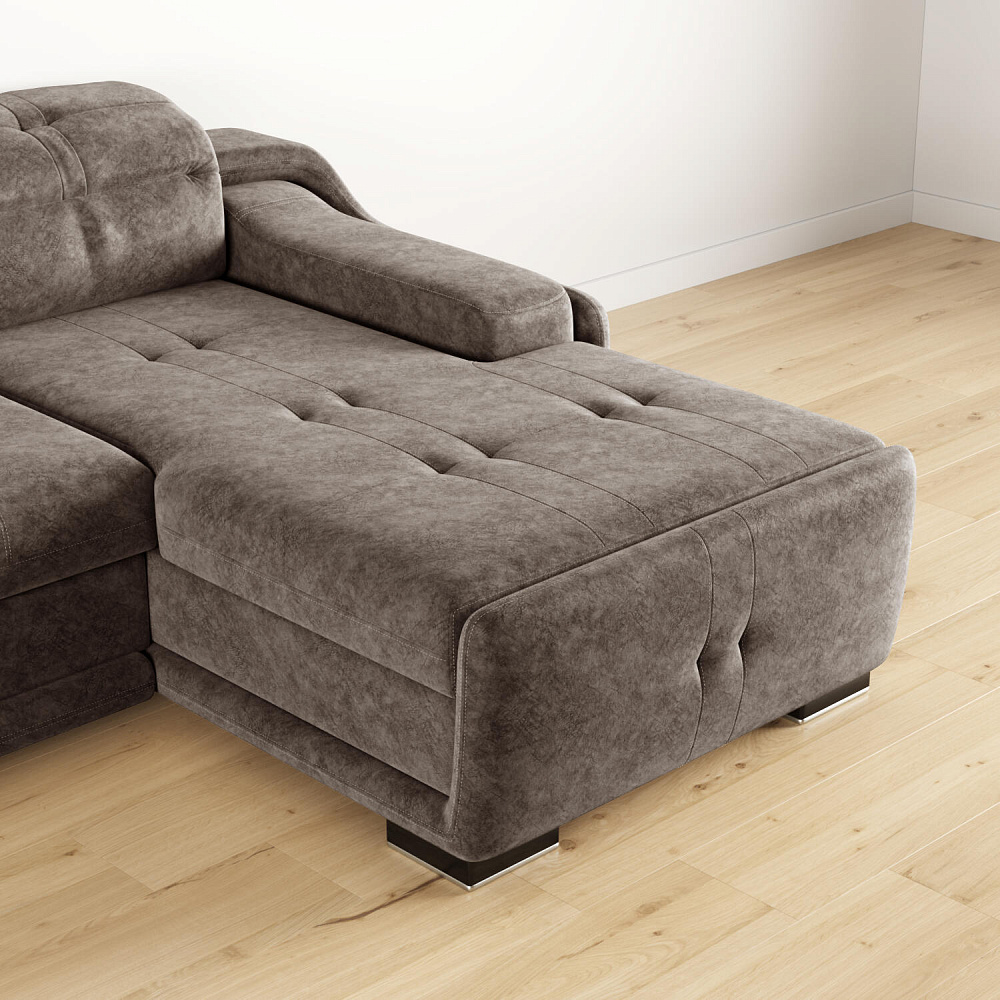 Обивка из велюра с покрытием Easy Clean. Мягкая ткань природных оттенков легко чистится благодаря грязеотталкивающей пропитке.
