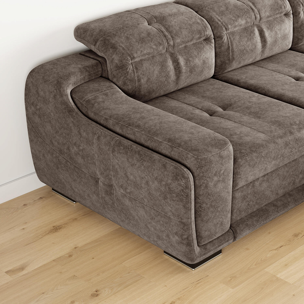 Подголовник с углублением в центре и фиксацией в 9 положениях. Для ещё большего комфорта в середине каждого из трёх подголовников дивана прострочен определённый узор, создающий углубление в центре.