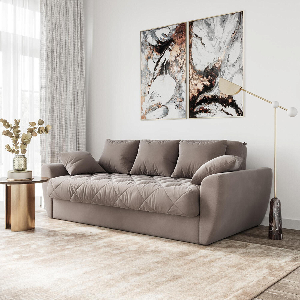 Прямой трехместный диван-кровать «Тэйлор» - это удобная и многофункциональная модель, которая великолепно вписывается в любой интерьер. Диван имеет сверхкомфортную глубокую посадку, спальное место для здорового отдыха и полноценного сна и встроенные вместительные ящики для белья. Глубину посадки легко регулировать с помощью больших приспинных и декоративных малых подушек для максимального удобного отдыха. Диван «Тэйлор» - это простота в использовании, надежность и безупречный комфорт.