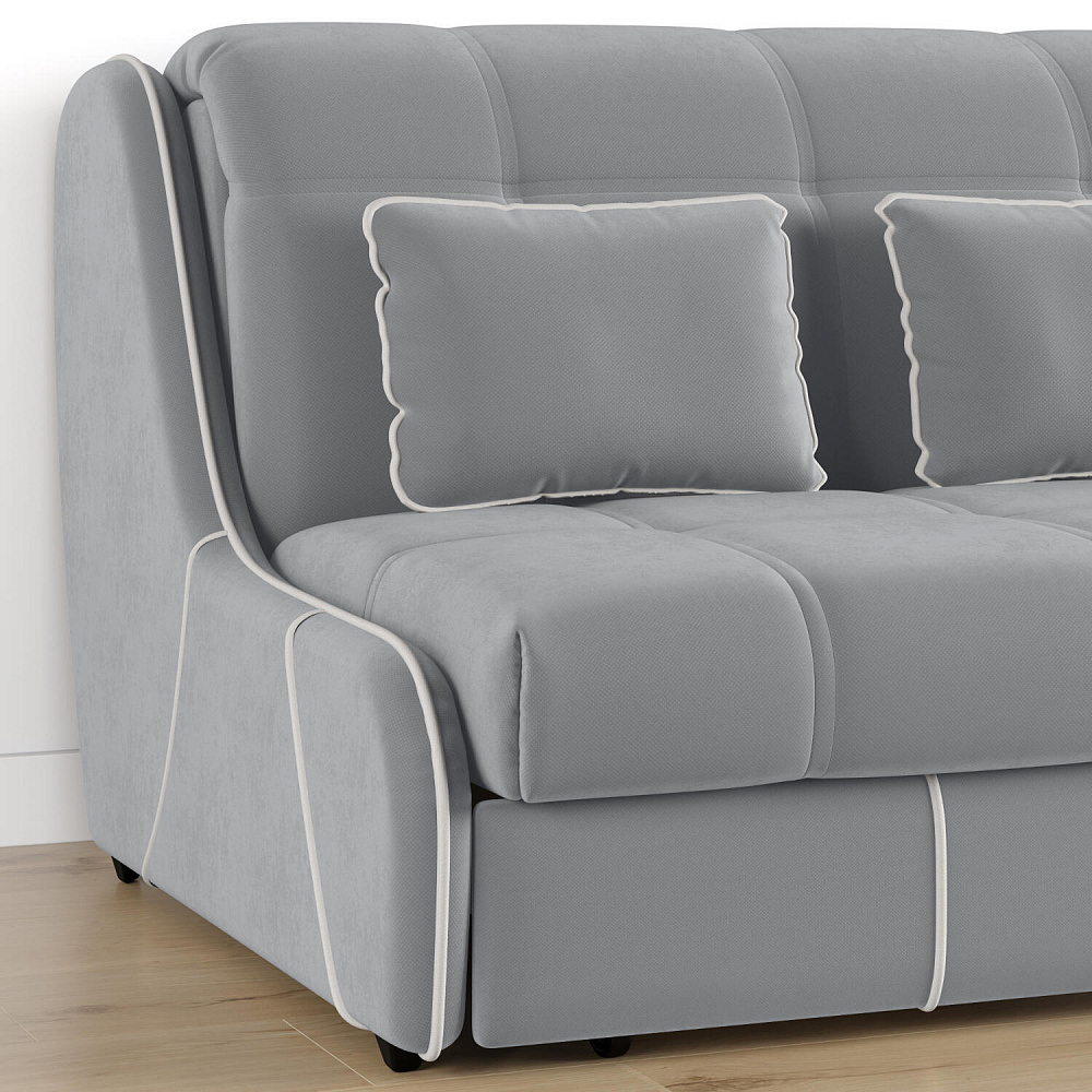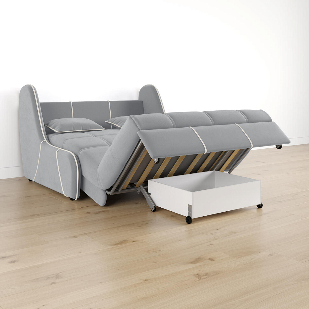 Механизм трансформации «Аккордеон». Чтобы разложить диван, необходимо приподнять сиденье и слегка потянуть на себя. В таком виде диван представляет собой единую конструкцию без петель и швов, которая обеспечит непревзойдённо комфортный сон. Для лёгкого раскладывания механизм усилен газовыми амортизаторами, а прорезиненные ролики защищают напольное покрытие от истирания.