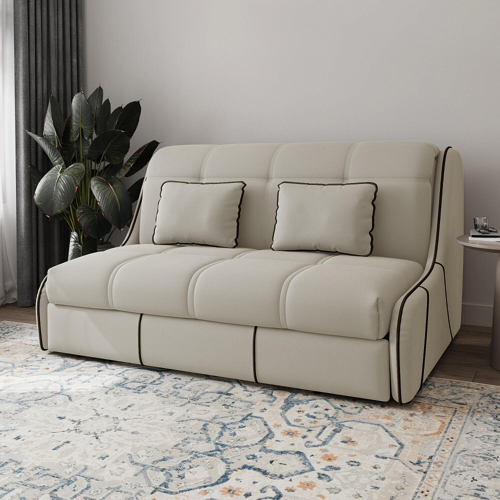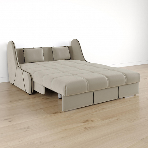 Механизм трансформации «Аккордеон». Чтобы разложить диван, необходимо приподнять сиденье и слегка потянуть на себя. В таком виде диван представляет собой единую конструкцию без петель и швов, которая обеспечит непревзойдённо комфортный сон. Для лёгкого раскладывания механизм усилен газовыми амортизаторами, а прорезиненные ролики защищают напольное покрытие от истирания.