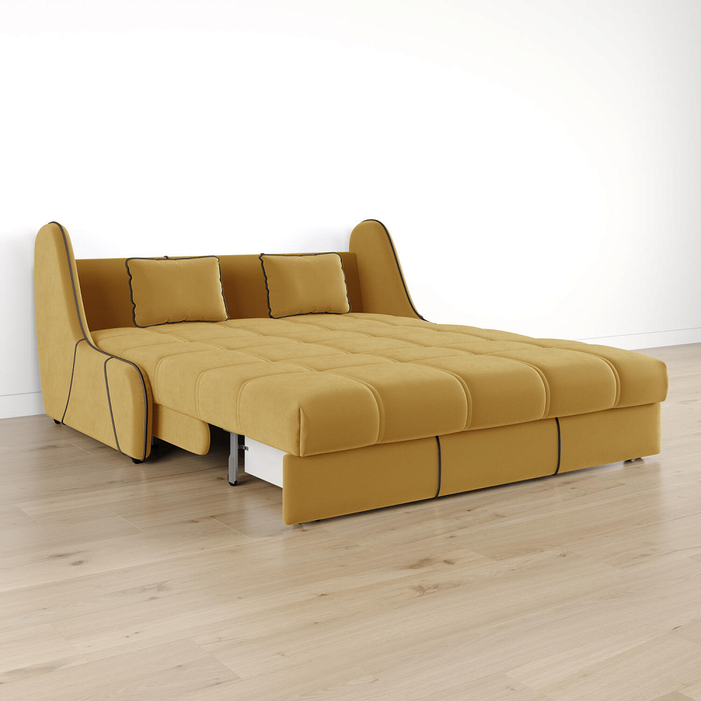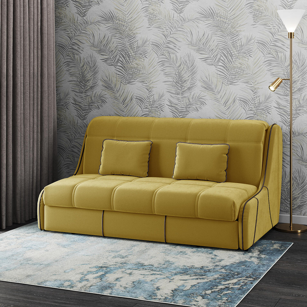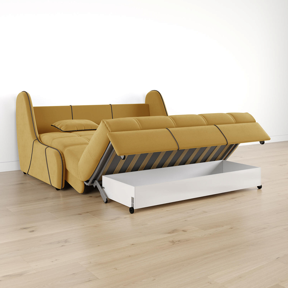 Механизм трансформации «Аккордеон». Чтобы разложить диван, необходимо приподнять сиденье и слегка потянуть на себя. В таком виде диван представляет собой единую конструкцию без петель и швов, которая обеспечит непревзойдённо комфортный сон. Для лёгкого раскладывания механизм усилен газовыми амортизаторами, а прорезиненные ролики защищают напольное покрытие от истирания.