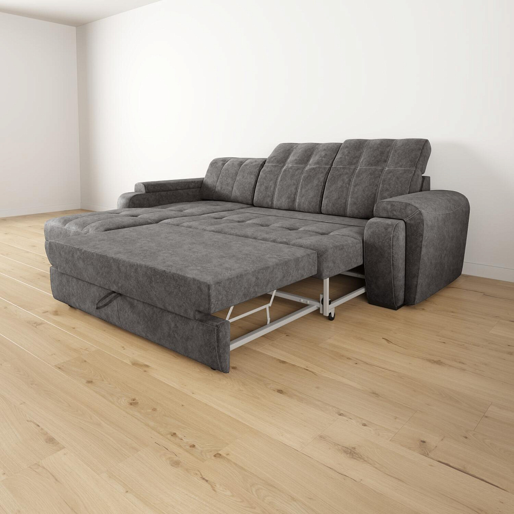 - Механизм трансформации «Телескоп». Металлический каркас на основе механизма «Дельфин» имеет бесшумное выкатывание благодаря применению обрезиненных роликов. Простая трансформация без скрипа позволяет превратить диван в полноценное спальное место, которое по комфорту приближено к матрасу и гарантирует максимальное расслабление и крепкий сон.