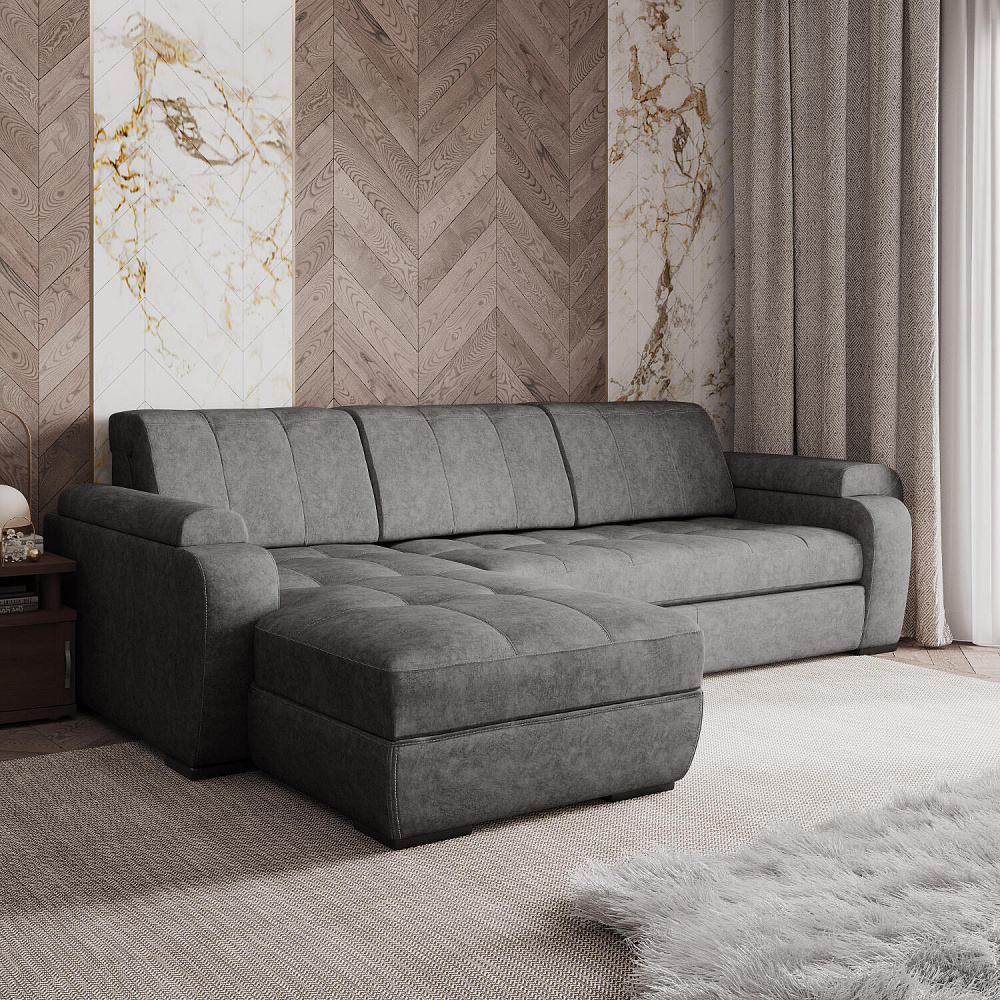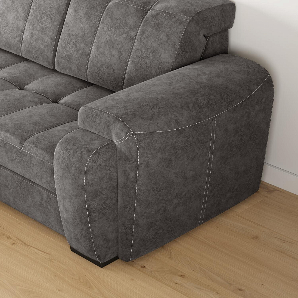Угловой диван «Бруно» — это лаконичность и строгость, универсальные размеры и высокая функциональность. Данная модель идеально подходит для людей высокого роста. Благодаря регулируемым подъемным подголовникам ваша спина будет всегда в правильном положении. Диван имеет удобную посадку за счет увеличенной глубины сиденья — 62 см. Мягкие элементы в верхней части сиденья в сочетании с высокопрочным пенополиуретаном в основании сиденья позволяют более равномерно распределить нагрузку, придавая дополнительный комфорт и увеличивая срок службы мебели.