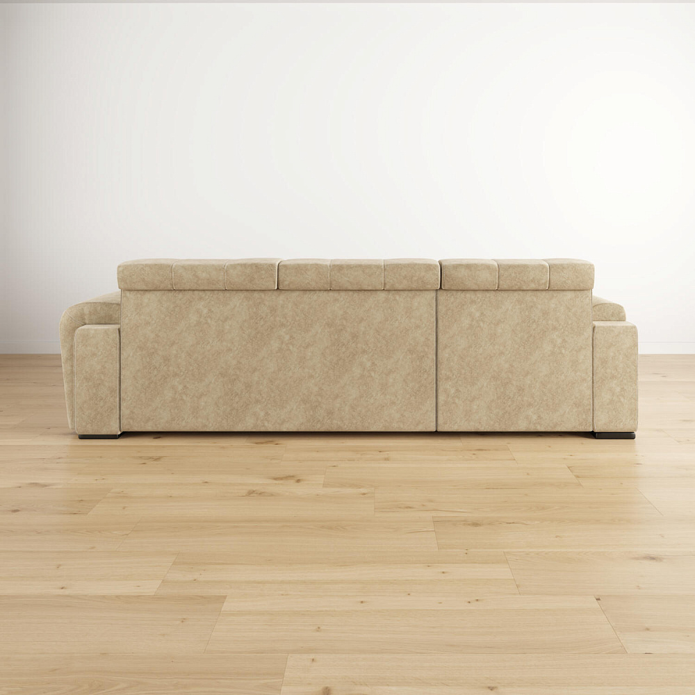 - Дизайн «360 градусов». Спинка выполнена в той же обивке, что и весь диван — модель будет изумительно смотреться как у стены, так и в центре комнаты.