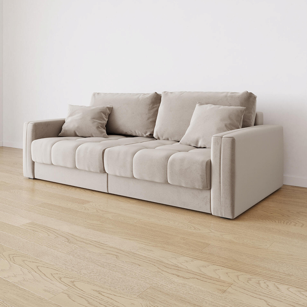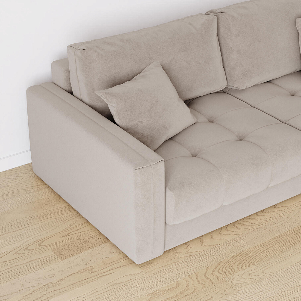 Диван «Дензел» — лучший вариант для ценителей комфорта в сочетании со стильным дизайном. Диван обладает глубокой посадкой, а приспинные и декоративные подушки позволят создать самое удобное место для отдыха. Спинка дивана выполнена в той же обивке, что и основная часть, что даёт возможность использовать диван для зонирования комнаты.