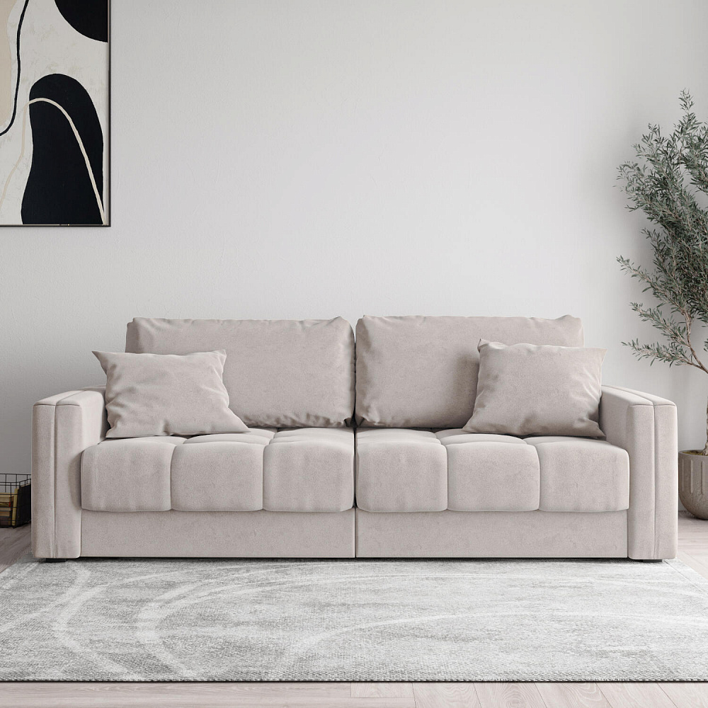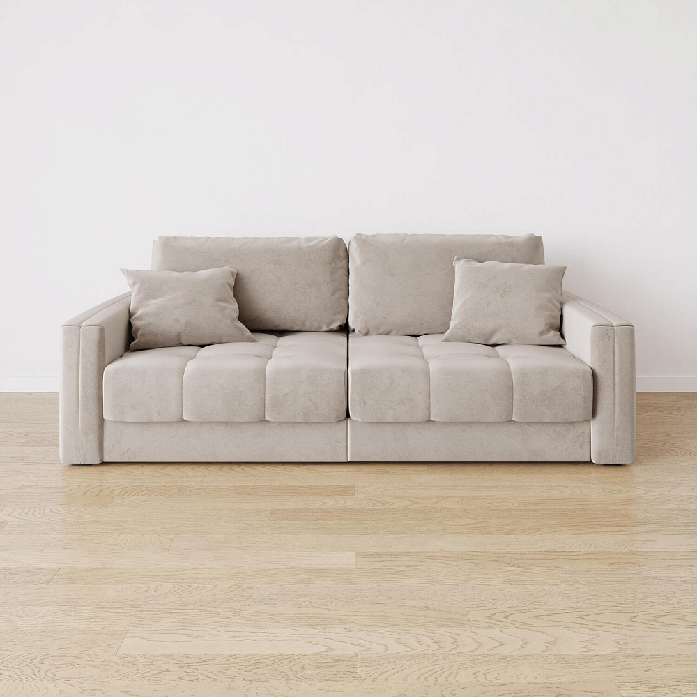 - Два вида подушек. В комплектацию дивана входят две приспинные и две декоративные подушки, которые позволяют удобно корректировать глубину посадки.