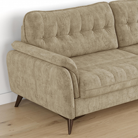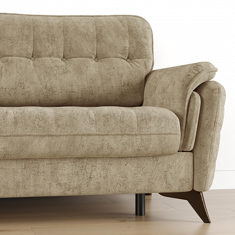 Диван «Корфу» подойдёт тем, кто ищет комфортную посадку, спальное место и вместительный бельевой ящик в одном изделии. Модель возвышается на аккуратных коричневых опорах и словно парит в воздухе. Элегантный диван «Корфу» с декоративными пуговицами, кантом и стёжками будет гармонично смотреться у стены в любом помещении.